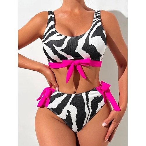 Costume da bagno bikini 2 pezzi da donna con supporto slip a stampa leopardata schiena scoperta abbigliamento da spiaggia per le vacanze stampa zebra collo a U senza maniche costumi da bagno