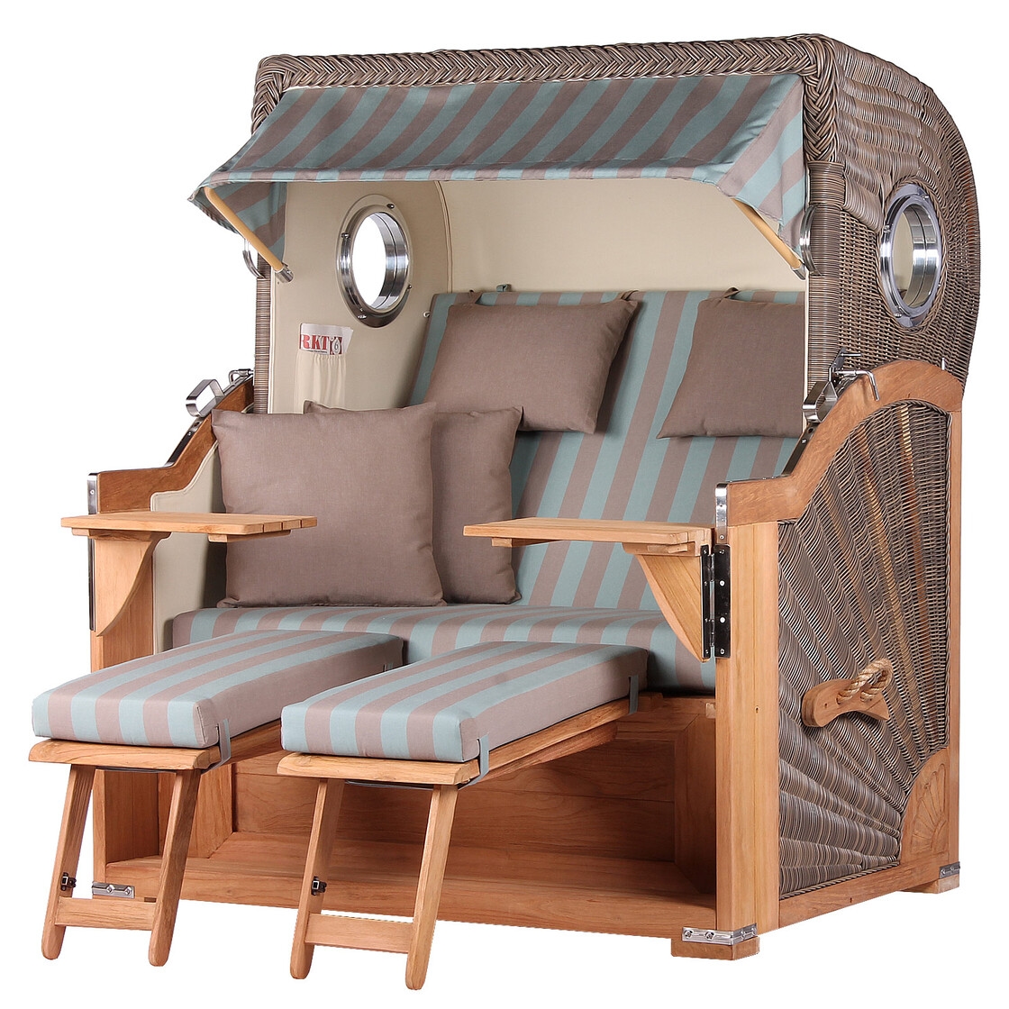 Mr. Deko Strandkorb Komplettset - bene living - Königssee Teak Bullauge - PE grau - Modell 520 - inkl. Liftersystem