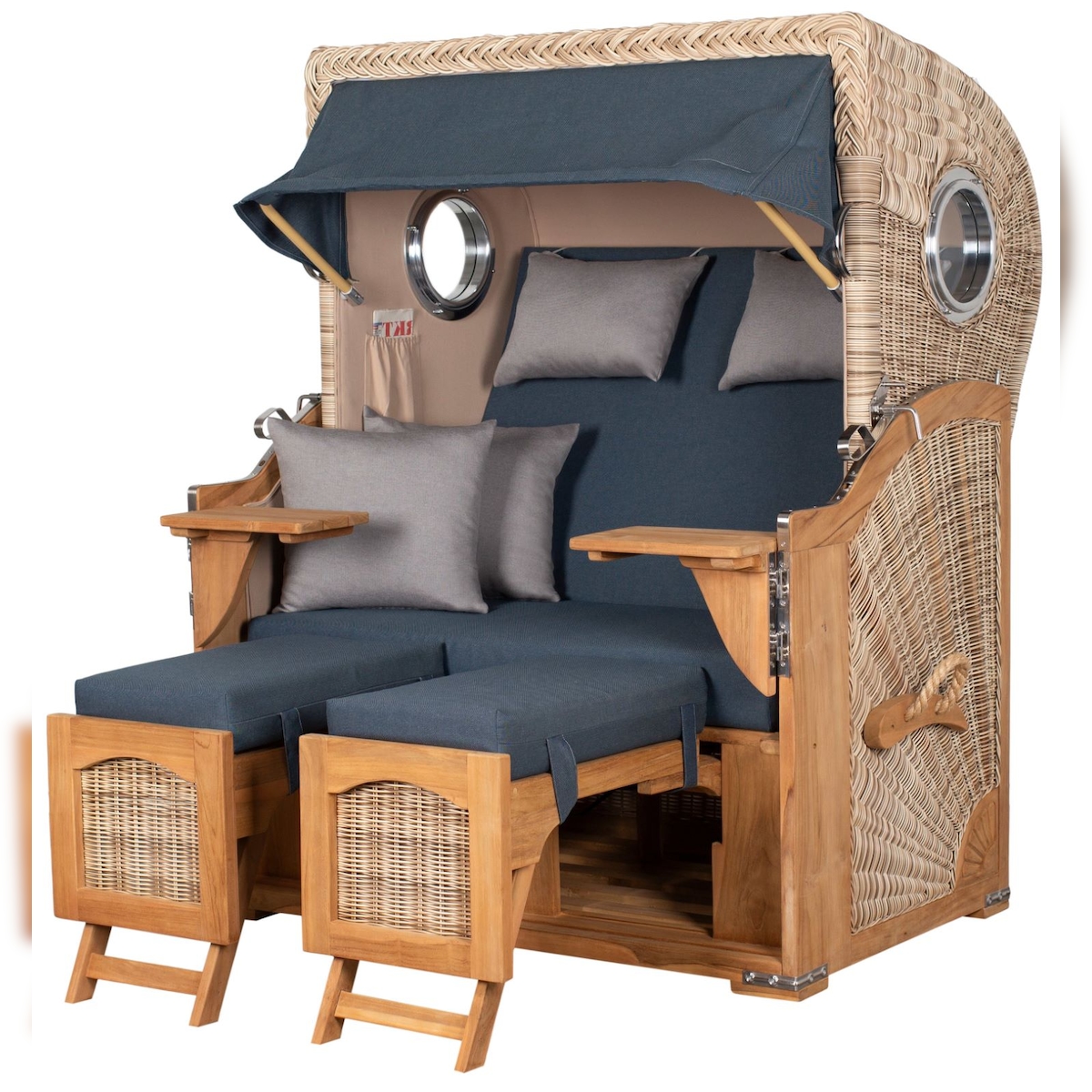 Mr. Deko Strandkorb - bene living - Ammersee Grande XL Teak Bullauge - PE grau - Modell 580 - 2,5-Sitzer inkl. Liftersystem