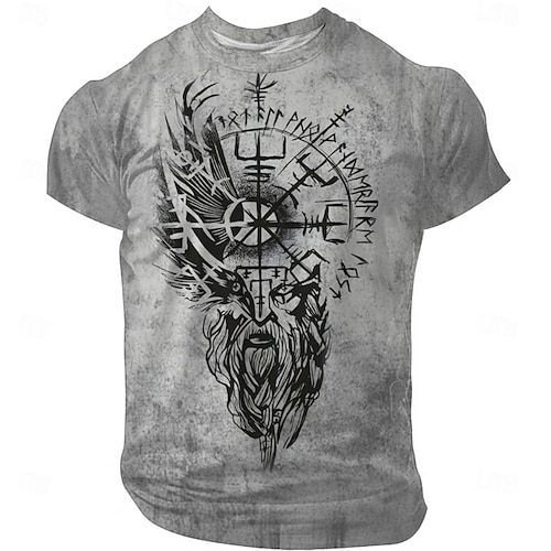 Per uomo Vichingo Maglietta Manica Corta maglietta Stampa 3D Girocollo Camicia Moda Etnico Streetwear Casuale Quotidiano Nero 1 Nero 3 Nero Estate Primavera Tutte le stagioni Abbigliamento S M L XL