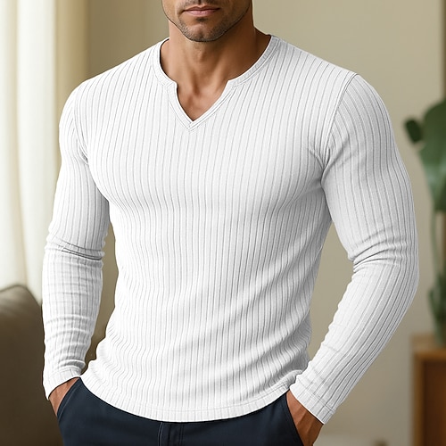 Per uomo Maglietta Canotta Muscolare Maglietta a Maglia a Coste Camicia a Maniche Lunghe Manica Lunga Scollo a V Estate Tutte le stagioni Semplice Striscia di Fossa Moda Designer Essenziale Lavoro a