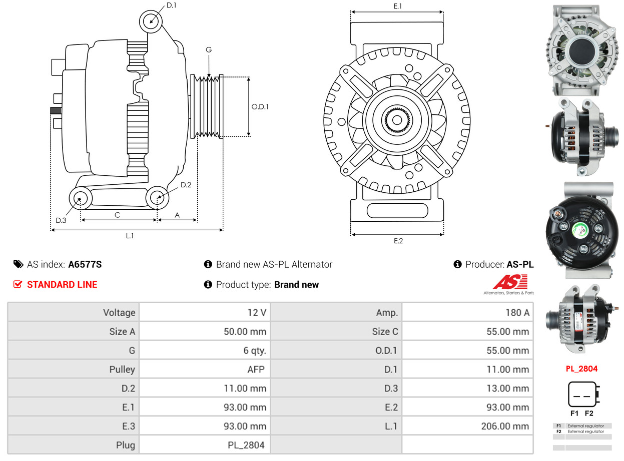 AS-PL Generator A6577S 12V 180A für CHRYSLER 04801833AB 4801833AB K04801833AB