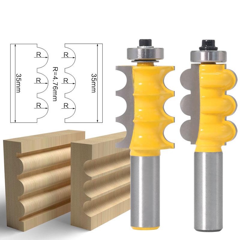 1/2PC Triple Bead & Triple Flute Large Molding Router Bits Set Line knife 8mm 12mm 1/2inch Shank Woodworking Cutter yellow