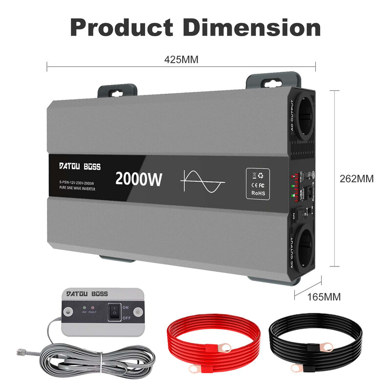 Ren Sinusbølge Inverter 12V/24V Til AC110V 220V 1000W 2200W 3000W Spenningsomformer Strømkonverter Solcelleinverter LED-Display