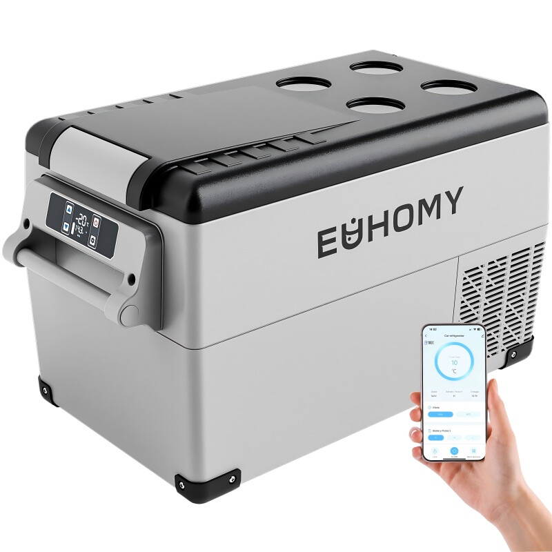 EUHOMY 30.6L Portable Compressor Fridge - 12V/24V DC & 100-240V AC Car Refrigerator with App Control &LCD Panel | Fast Cooling (-20°C~20°C) | Energy-Efficient 45W | for Camping, Trucks, Home & Travel [Energy Class C]