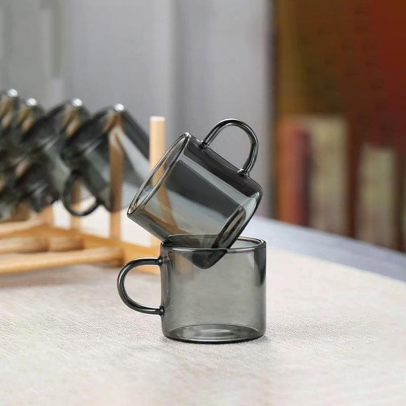 PIGE HOME 3/6/12 stk Glass Tekoppsett Fortykket Varmebestandig Guanhai Tekopp 100ml Røygrå Liten Hankkopp Kung Fu Tekopp