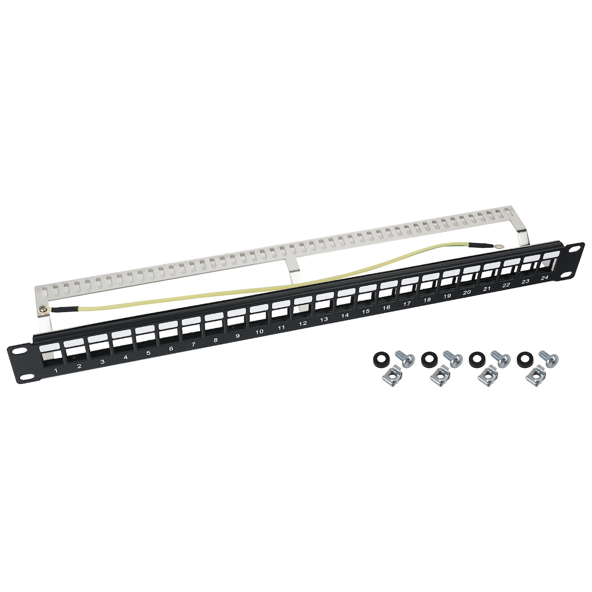 UTP Keystone-Patchpanel für Serverschrank, HMF 66445, 24 Ports RJ45, 19 Zoll, Schwarz