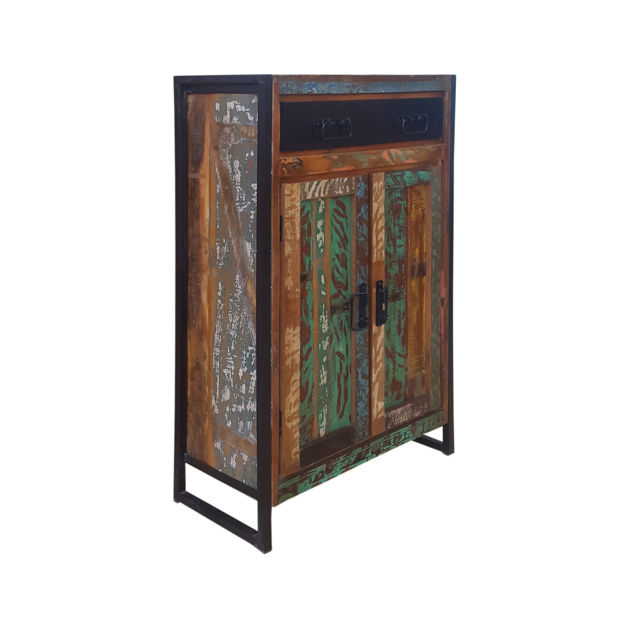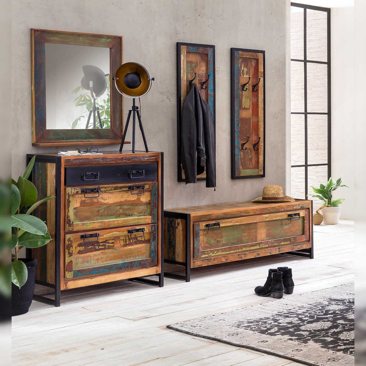 SIT Möbel Dielen-Set 5-tlg., 2 Schuhschränke, 2 Paneele, 1 Spiegel, Altholz bunt, Altmetall schwarz, B98 x T40 x H96cm Serie BALI