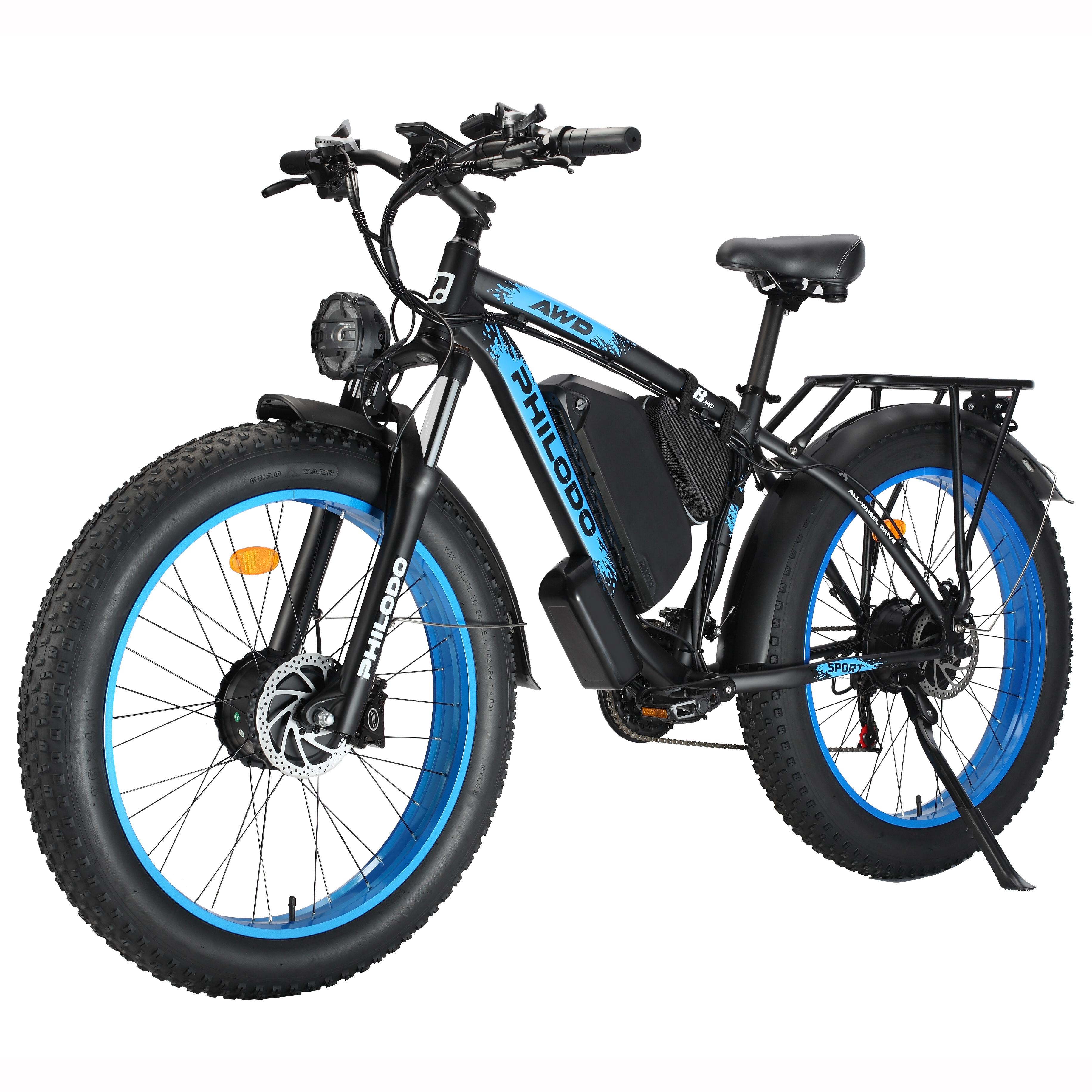PHILODO H8 2000W Dual Motor Electric Bicycle 48V23Ah Battery 26 Inch All-Terrain Wide Tires 150KG Load E-Monutain Bike For Adult With TowSeat white/bl