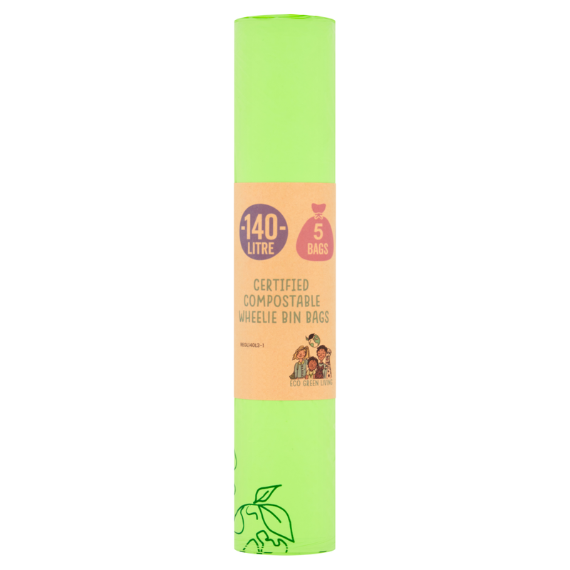 Eco Green Living Compostable 140L Bin Liners (5 Bags) 140l