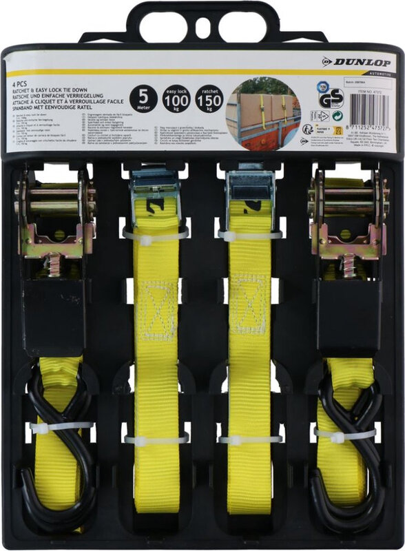 Dunlop Ratchet Strap Set - 5 Meter, Geel, 4 stuks