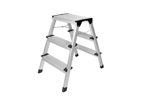 PROREGAL Metal Double Giraffe Doppelseitige-Aluminium-Stufenstehleiter | 3 Stufen | 63cm hoch | 150kg Tragkraft | Leiter, Trittleiter, Stufenleiter