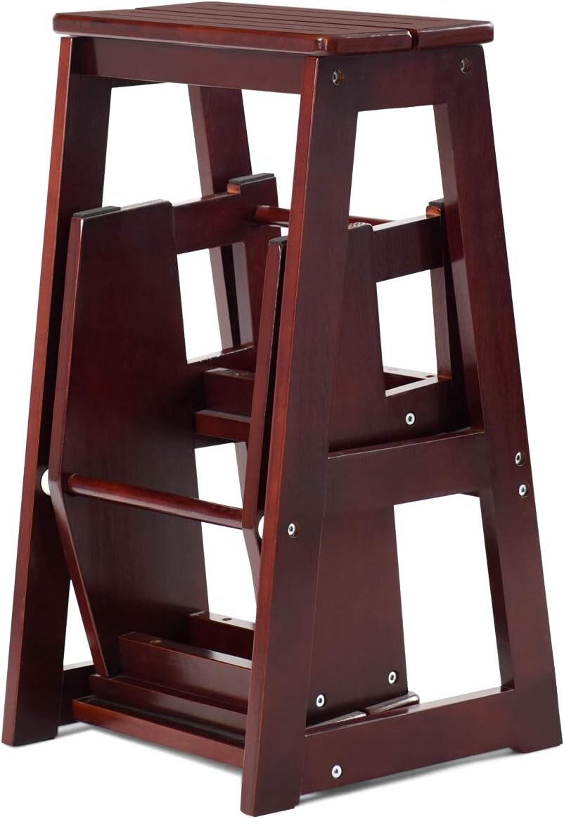 COSTWAY 3-stufige Trittleiter, klappbare Trittleiter-Hockerleiter, 66 cm hoch (braun)