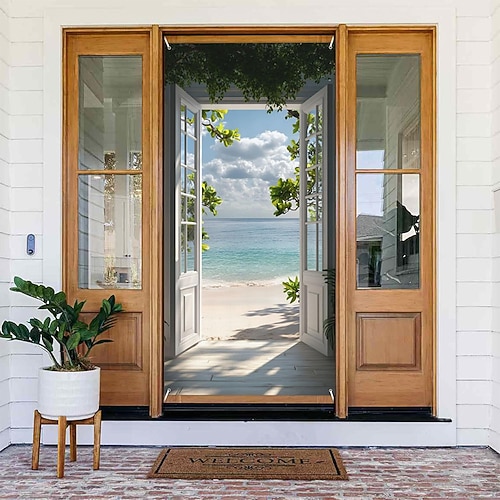 Tenda da porta con vista sull'oceano, prospettiva 3D, arazzo divisorio per camera da letto, cucina, ingresso, arredamento per la casa