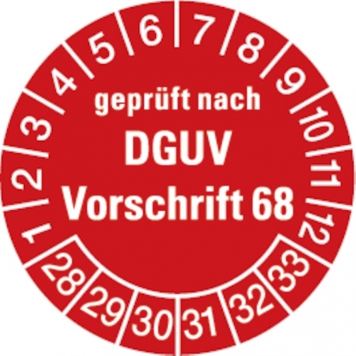 Dreifke® Prüfplakette geprüft nach DGUV Vorschrift 68 ab 2028 ro - 30 mm Folie selbstklebend, 10 St