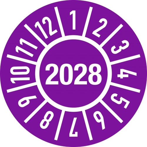 Dreifke® Prüfplakette Jahr 2028 mit Monaten, Folie, Ø 30 mm, 10 Stück/Bogen