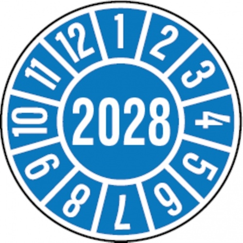 Dreifke® Jahresprüfplakette blau/weiß 2028 - 35 mm Folie selbstklebend, 10 St