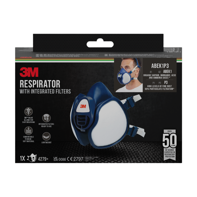 3M™4279+ - Anti-Gaz et Vapeurs Organiques, Inorganiques, Acides et Ammoniac ABEK1 - Anti-Poussières P3 ABEK1-P3