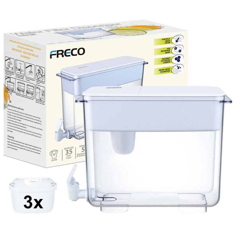 Freco by Bluetech Waterfilterdispenser 7 L ca. 30 kopjes met LCD-timer inclusief 3 filters past in de koelkast