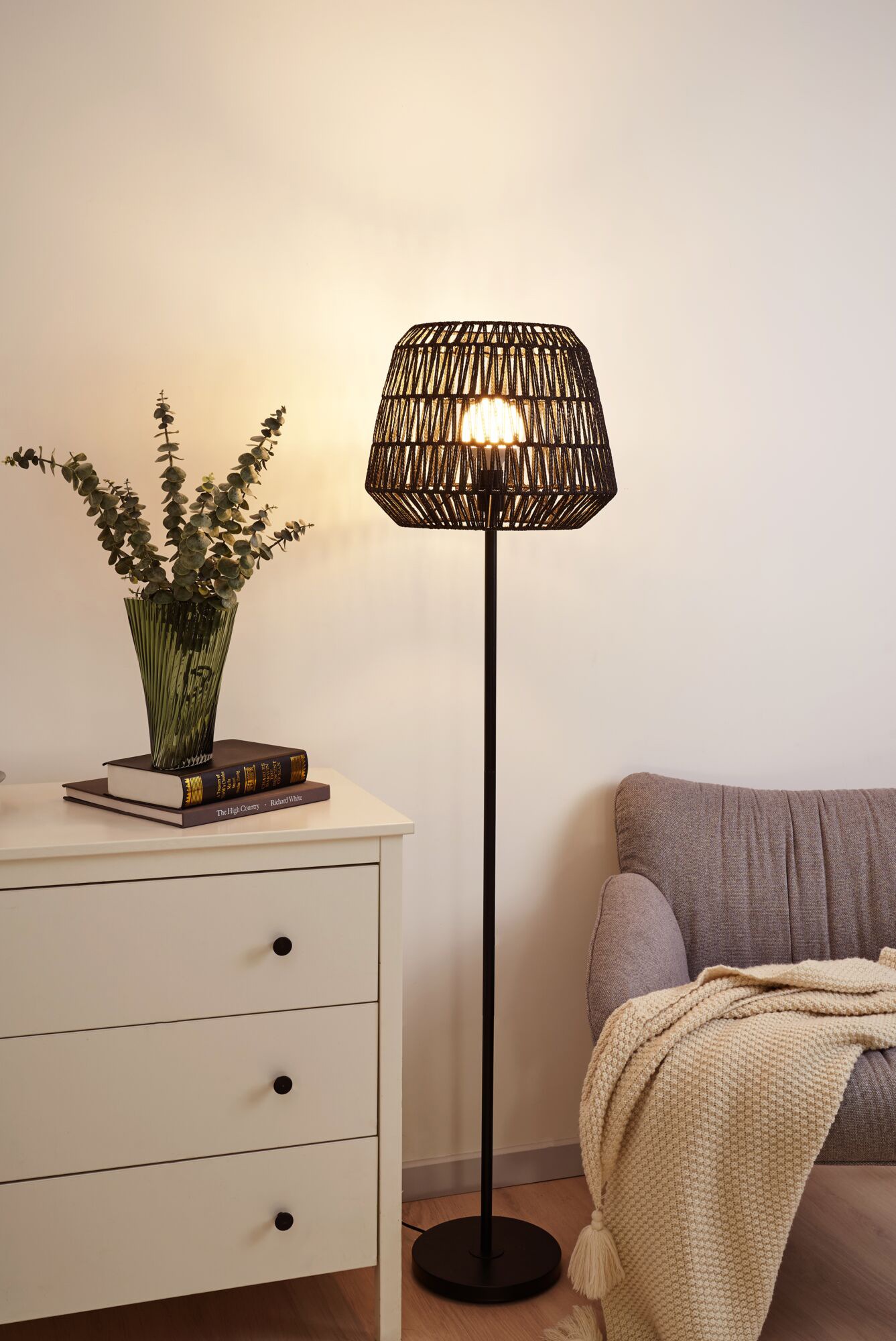 PAULEEN Stehlampe "Timber Pearl", schwarz, Ø 40cm H: 154,0cm, Lampen, E27, Standleuchte Stehlampe