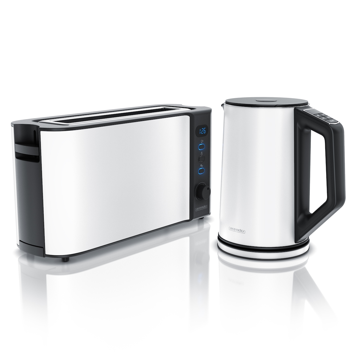 Arendo Frühstücksset, Wasserkocher ELEGANT 1,5 Liter & Langschlitztoaster für 2 Scheiben, Weiß