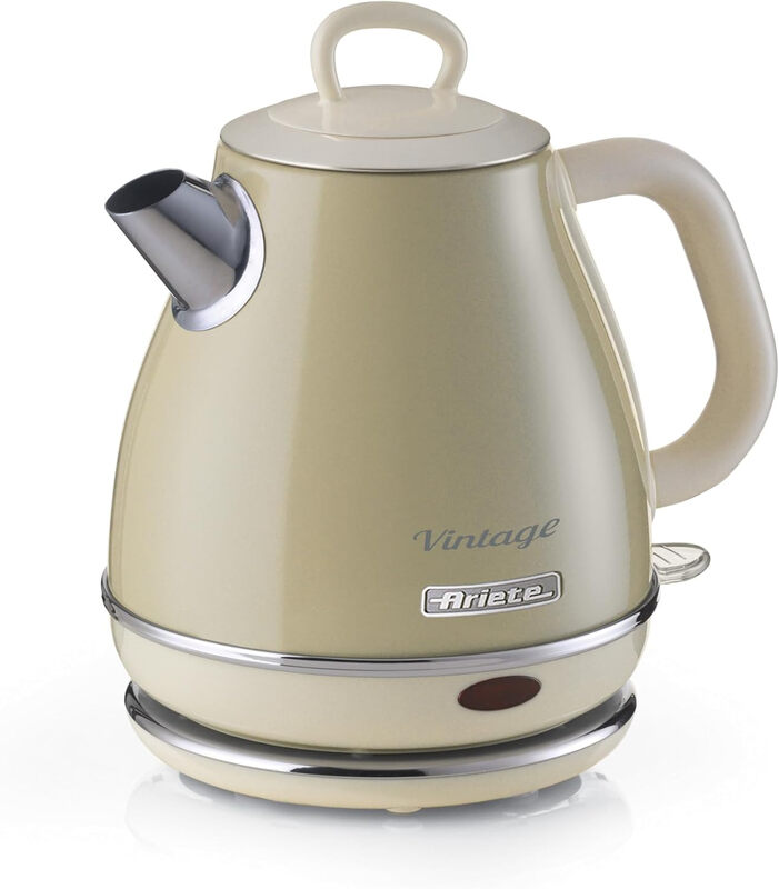 Ariete Vintage 2868/C Retro-Stil Wasserkocher ohne Kabel, 1 Liter Fassungsvermögen, 360° drehbare Basis, Vintage-Design, Beige