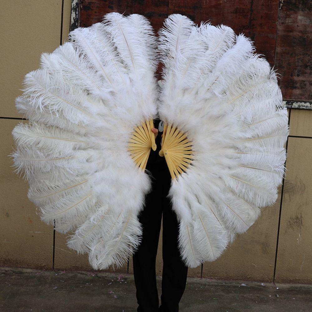Big Red Ostrich Handheld Feather Fan 30*52cm 35*60cm Performance Feathers Fan Crafts 35cm