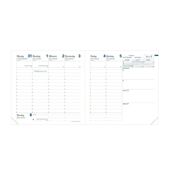 QUO VADIS Ersatzeinlage für Kalendarium "Executif", 160 x 160 mm, 1 Woche / 2 Seiten, Spaltenansicht