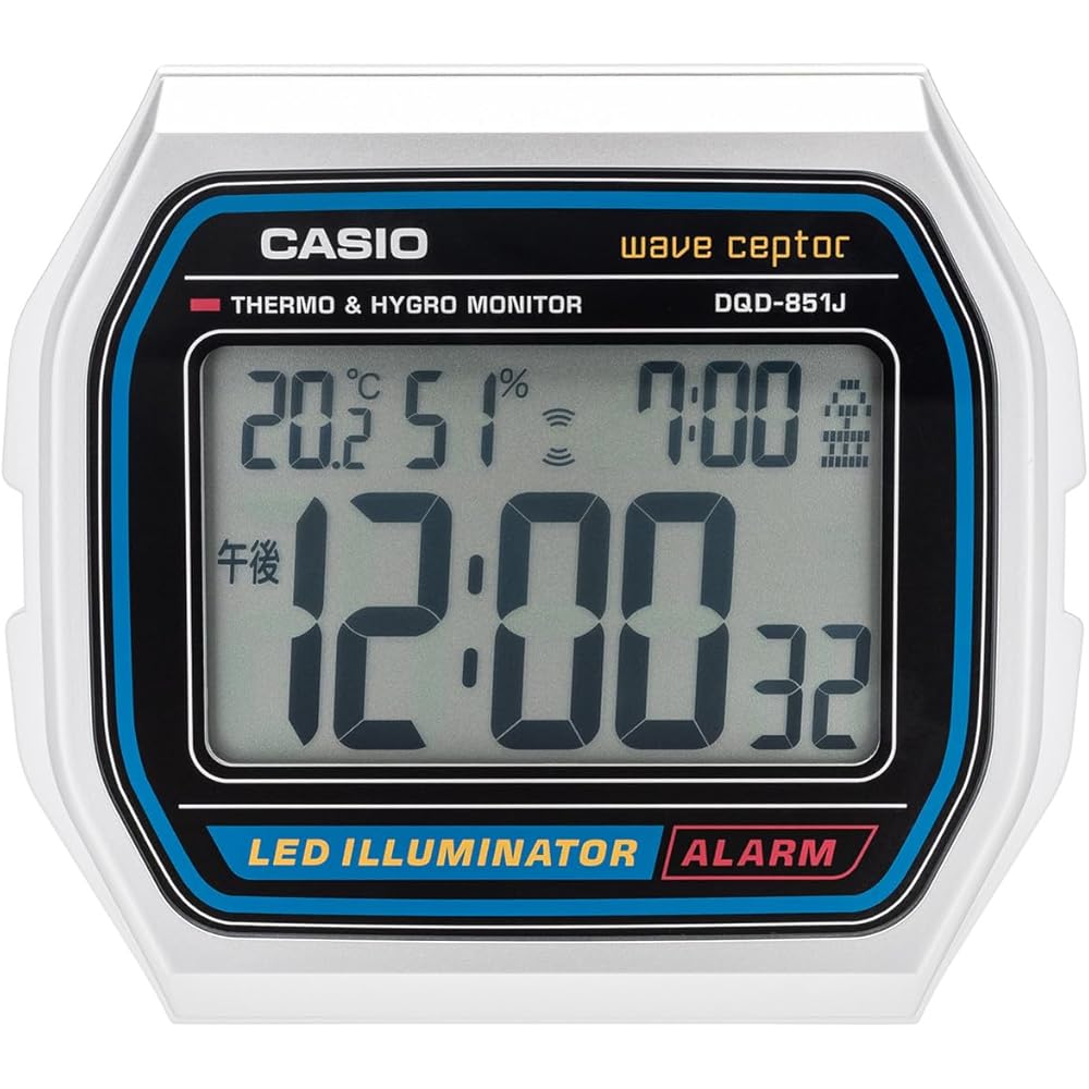 CASIO Wecker, Funkgesteuert, Temperatur und Luftfeuchtigkeit, Datum, Wochentag, Elektronischer Ton, Alarm, Schlummerfunktion, Licht, Silber, DQD-851J-