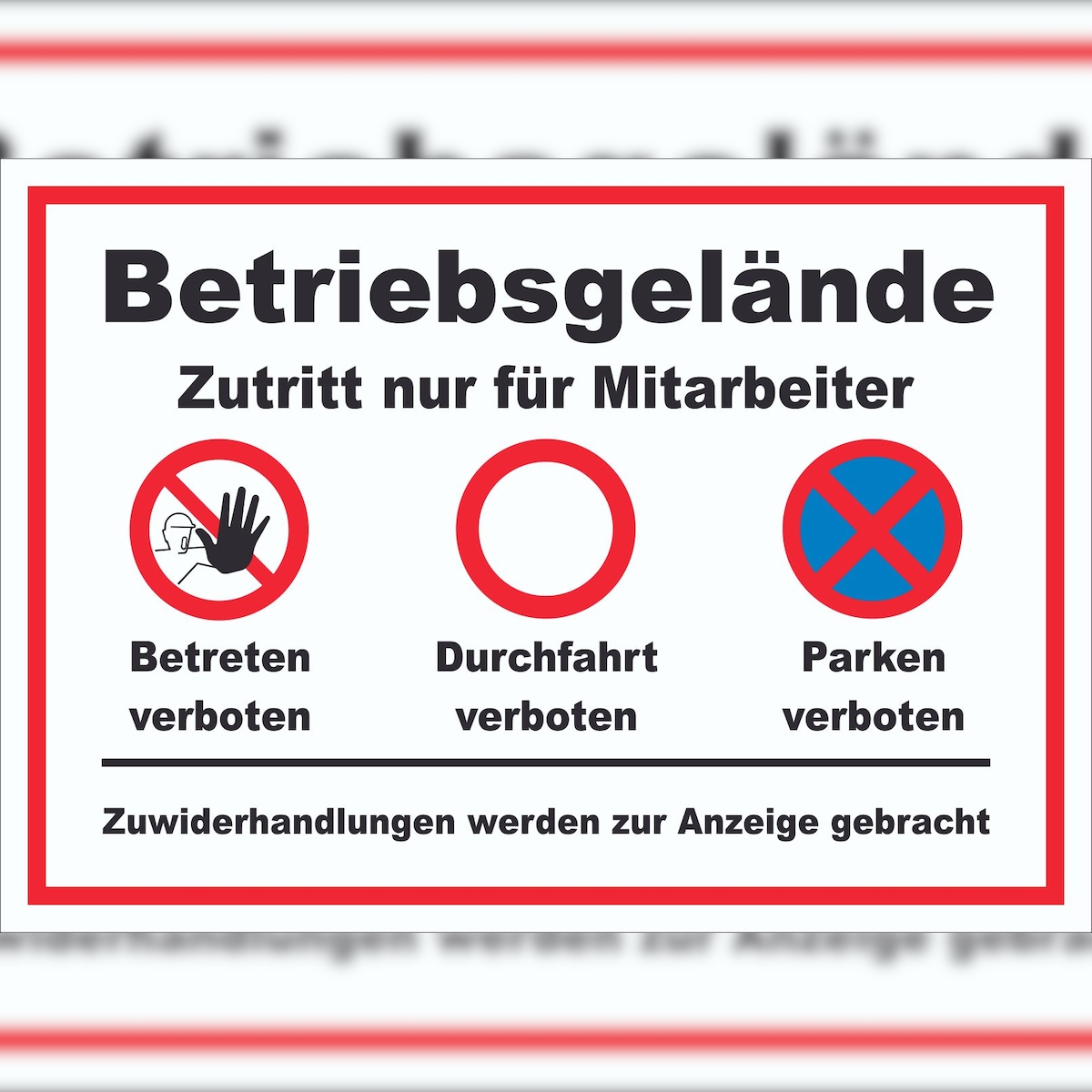 HB-Druck Schild Betriebsgelände Mitarbeiter Betreten Durchfahrt Parken A0 Rückseite selbstklebend