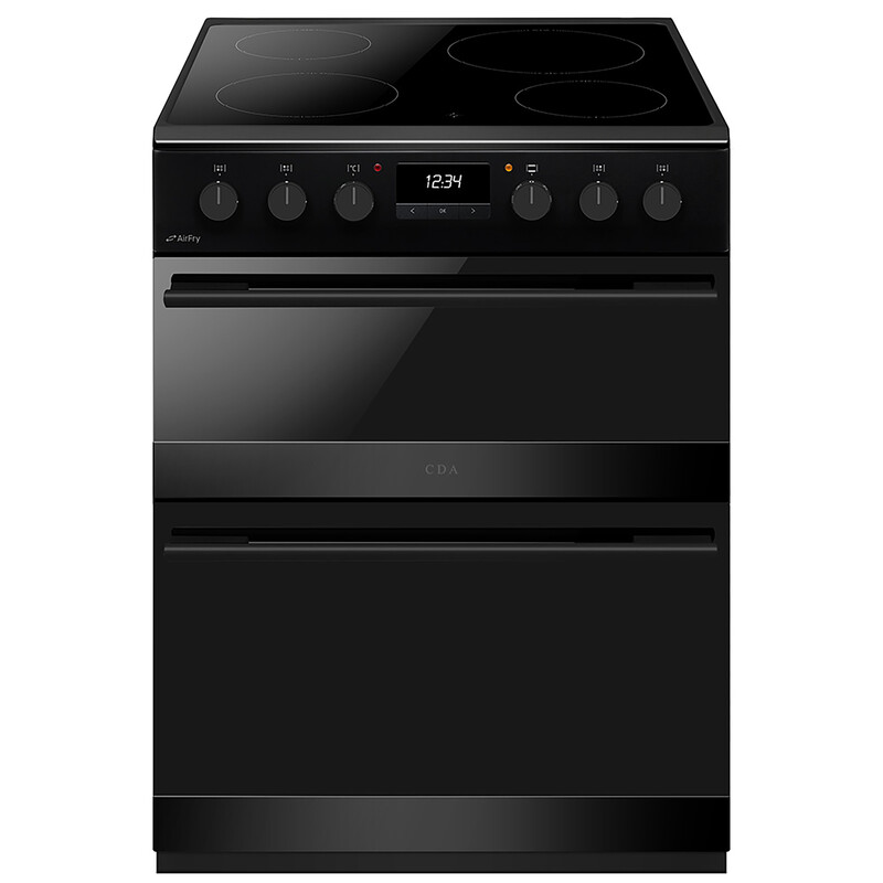 CDA CFC6100MB 60 cm Freestanding Ceramic Electric Cooker with Double Oven & Air-Fry Tray – Black – Energy Class A/A