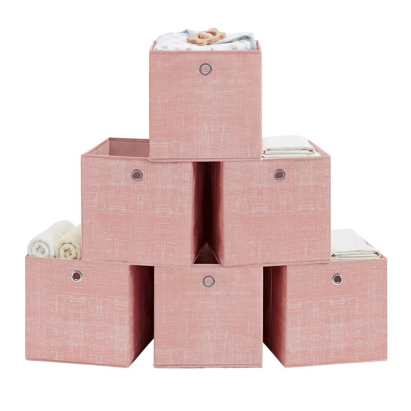 SONGMICSHOME Cube Organisers, Foldable Fabric Storage Boxes with Handles, Set of 6, for Shelves, Clothes, Pink