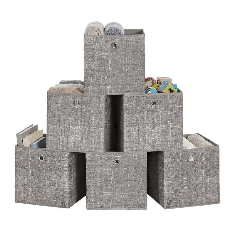 SONGMICSHOME Cube Organisers, Foldable Fabric Storage Boxes with Handles, Set of 6, for Shelves, Clothes, Taupe