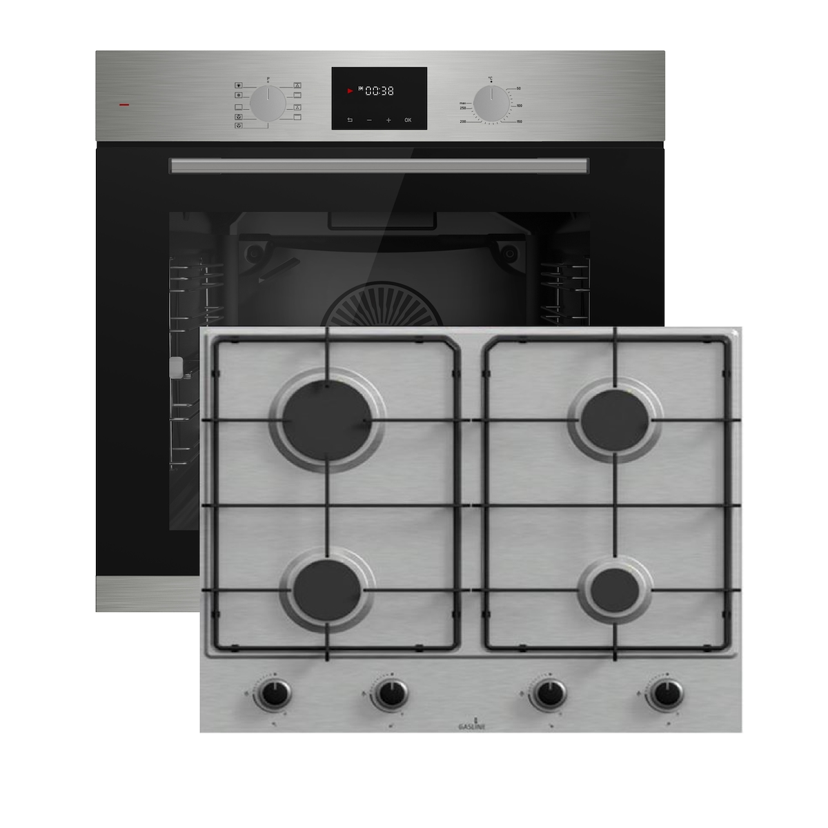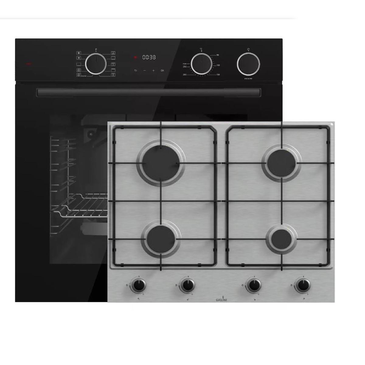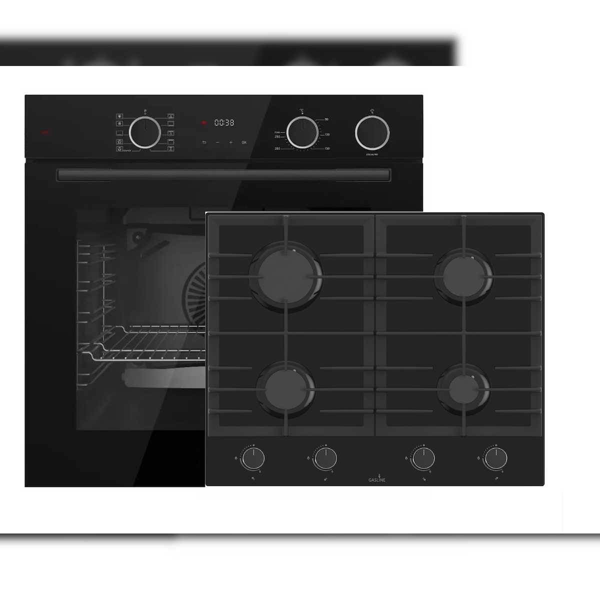 Böhme Einbauherdset mit Elektrobackofen HB60F78PPX + Gasline Gaskochfeld GAG60GLG 60cm Schwarz Glaskeramik mit 4 Brennern