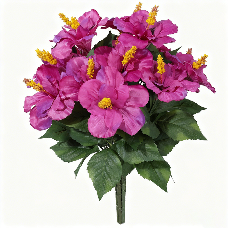 3Pcs 17.8in/45cm Artificial Flowers for Outdoors Faux Plants Realistic Fake Hibiscus Tropical Flower Silk Flowers for Outside Planter Porch Patio Yard Garden Home Decoration(fuchsia)