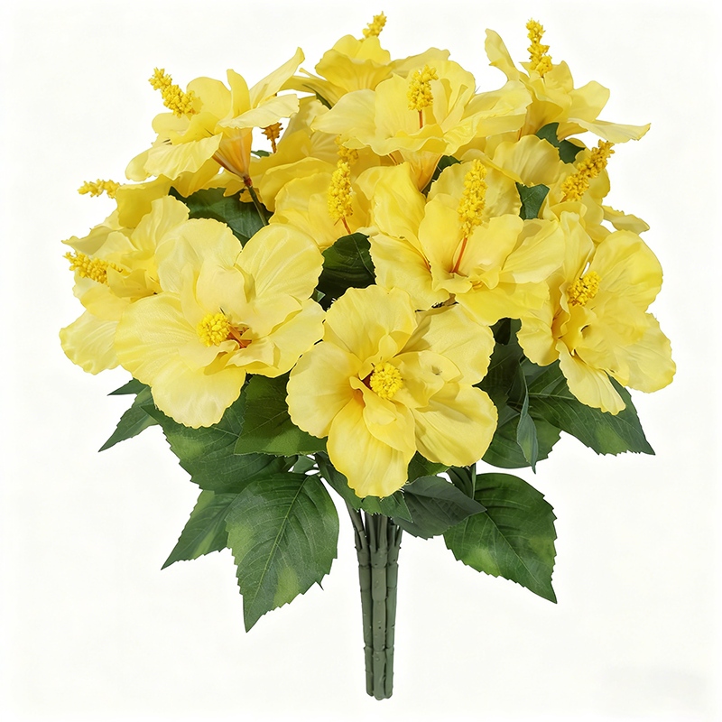 3Pcs 17.8in/45cm Artificial Flowers for Outdoors Faux Plants Realistic Fake Hibiscus Tropical Flower Silk Flowers for Outside Planter Porch Patio Yard Garden Home Decoration(yellow)