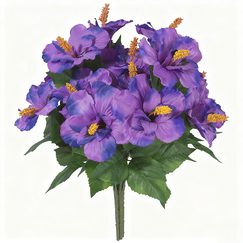 3Pcs 17.8in/45cm Artificial Flowers for Outdoors Faux Plants Realistic Fake Hibiscus Tropical Flower Silk Flowers for Outside Planter Porch Patio Yard Garden Home Decoration(purple)
