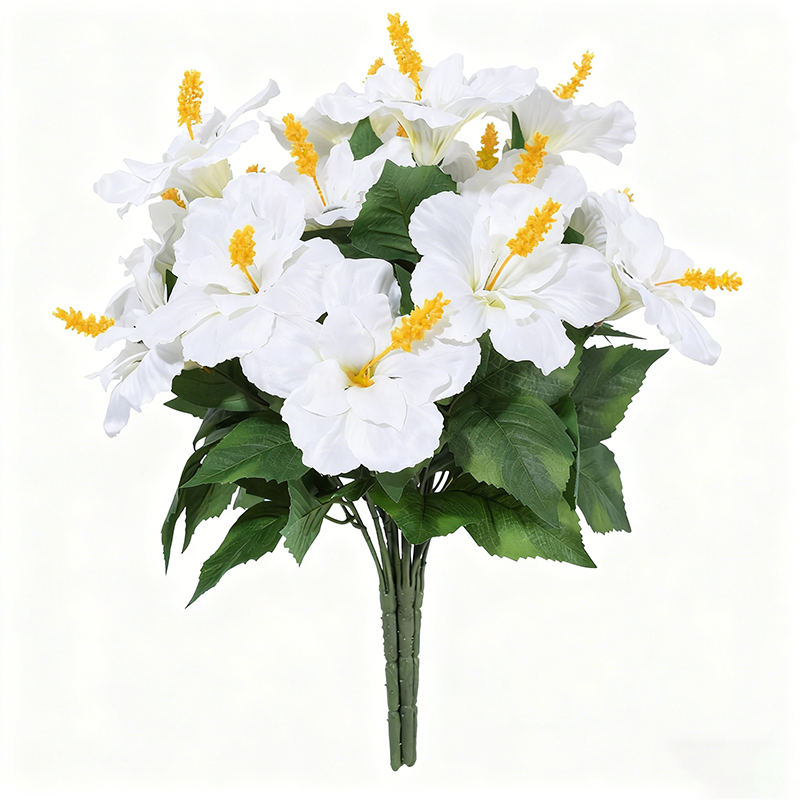 3Pcs 17.8in/45cm Artificial Flowers for Outdoors Faux Plants Realistic Fake Hibiscus Tropical Flower Silk Flowers for Outside Planter Porch Patio Yard Garden Home Decoration(white)