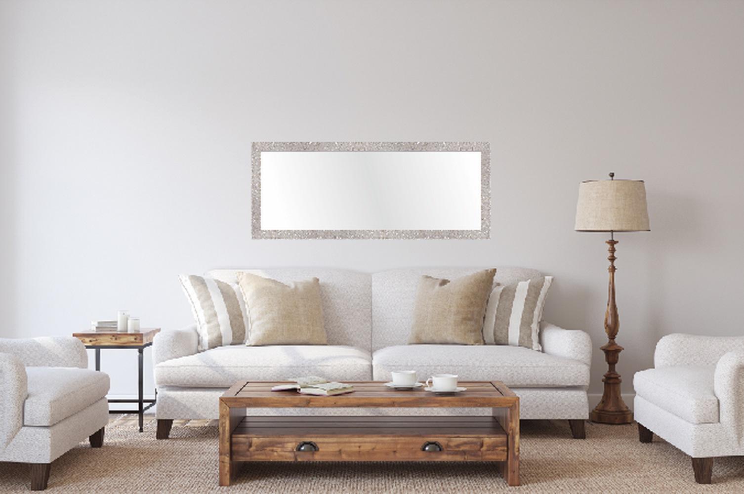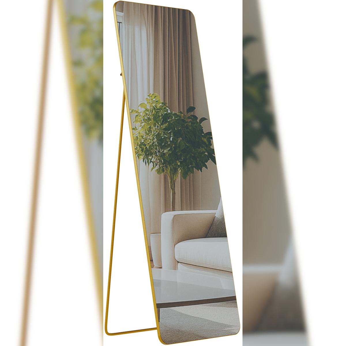 Ganzkörperspiegel SALESFEVER "Bristol Spiegel, 160 cm Höhe", beige, B:60cm H:160cm T:3,5cm, MDF, Polyester, Spiegelglas, Spiegel, Ganzkörperspiegel, Wellenförmiger Kunstfell-Rahmen, 170cml beige B/H/T: 60cm x 160cm x 3,5cm,mit wellenförmigem Rahmen, organ