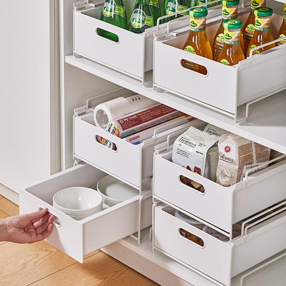 Küchen-Lagerregal mit Gleitschienen, ausziehbare Küchenschublade, Ablagefach, Gewürzbox, Lagerregal, Schränke, Organizer