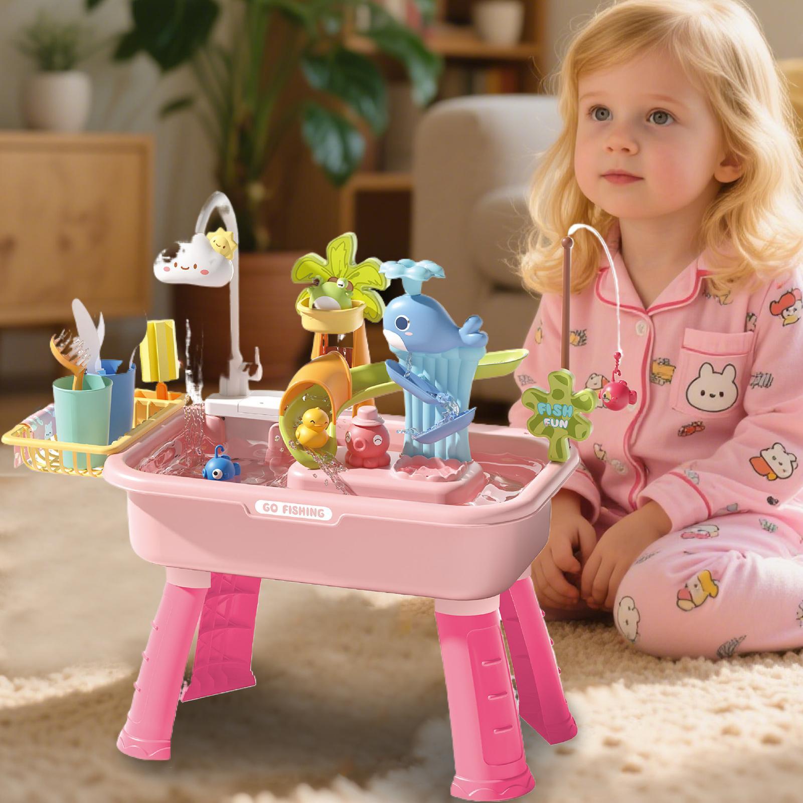 Kinderküchenspülbecken Spielzeug Elektrischer Geschirrspüler Spielzeug mit fließendem Wasser Rollenspiel Spielzeug Essen Angeln Spielzeug Rollenspiel