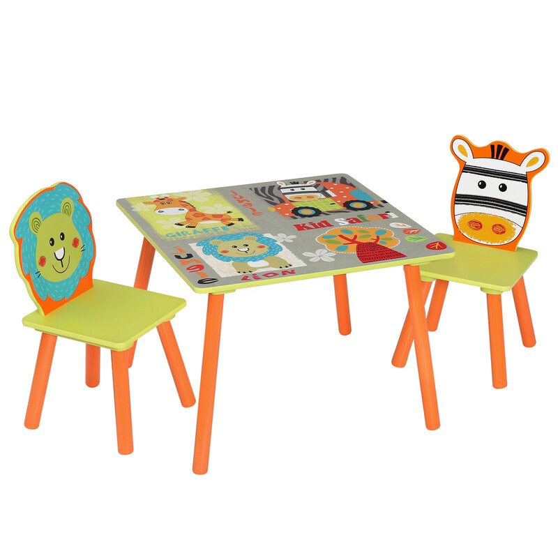 WOLTU Kindertisch mit 2 Stühlen, Tisch- und Stuhlsets, Beine aus Massivholz, Abgerundete Ecken, Sitzgruppe für Kinder Vorschulkinder