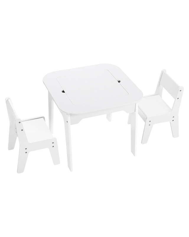 Woltu Kindertisch mit 2 Stühlen, Kindersitzgruppe, Kindertisch mit Aufbewahrung, doppelseitiger Tischplatte, Kindertisch- und Stuhl-Set, Sitzgruppe für Kinder, Kindersitzgruppe, Weiß