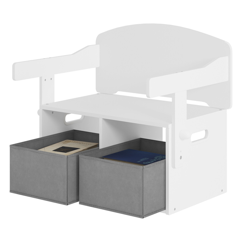 Lestarain Kindertisch mit Stuhl und Spielzeug-Aufbewahrungsbank, 2-in-1 Möbelset, Weiß/Grau, MDF & TNT