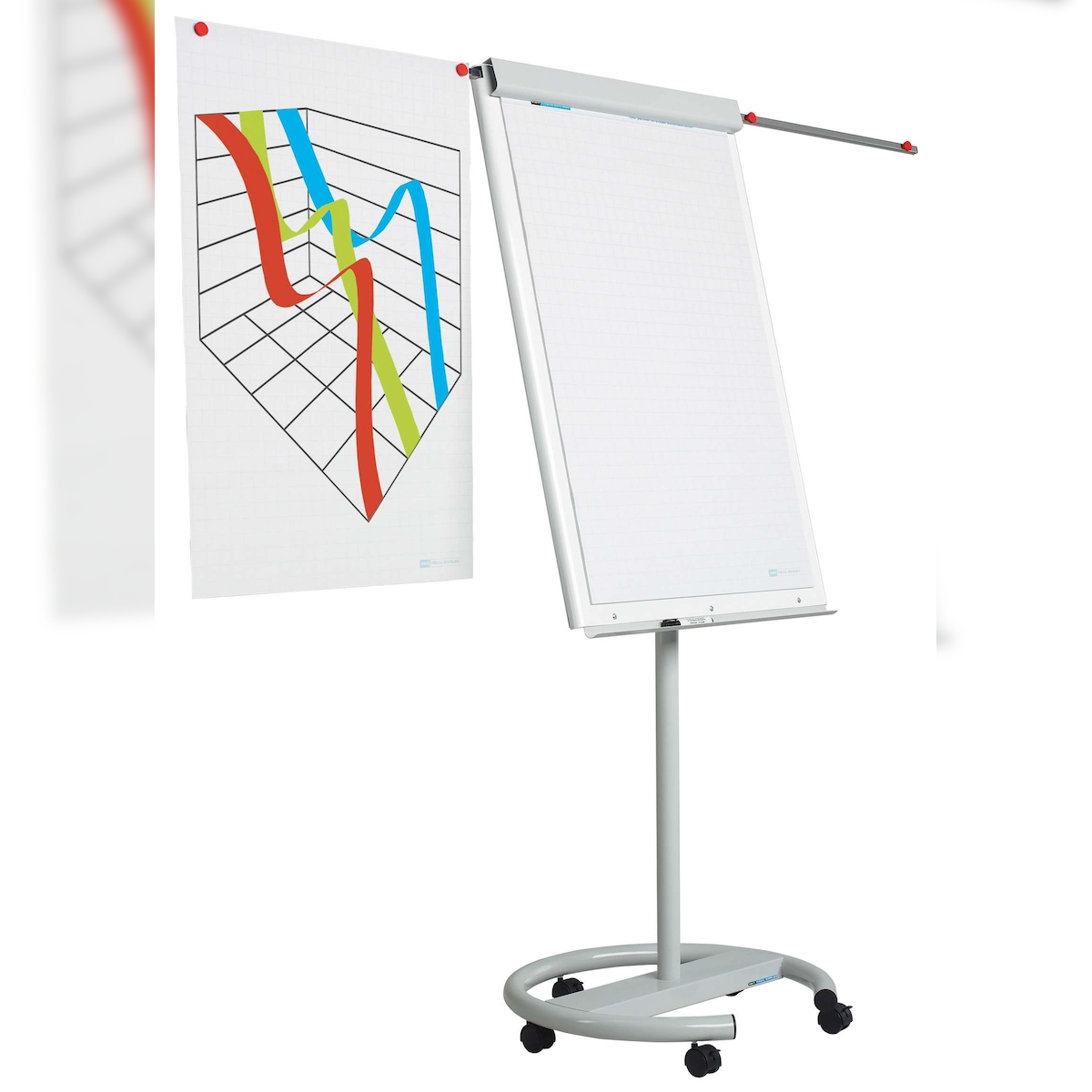 PROREGAL Flipchart mit Schnellklemme, 2 Seitenarmen & Whiteboard Grundfläche, Stufenlos höhenverstellbar 170-200cm, 5 Rollen, Emaillierter Stahl, Weiß