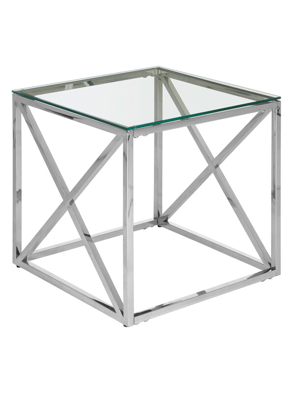 Interiors by Premier Side Table Allure Cross Square Silver Finish/Glass