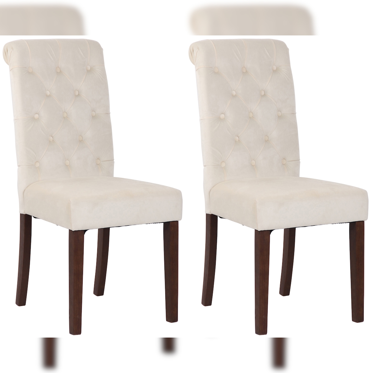 DELUKE® 2er Set Esszimmerstühle WALES Samt - 98x45x63cm, creme, Holz Gestell Stühle Esszimmerstühle Stuhl Esszimmer Esstisch Stühle Küchenstuhl