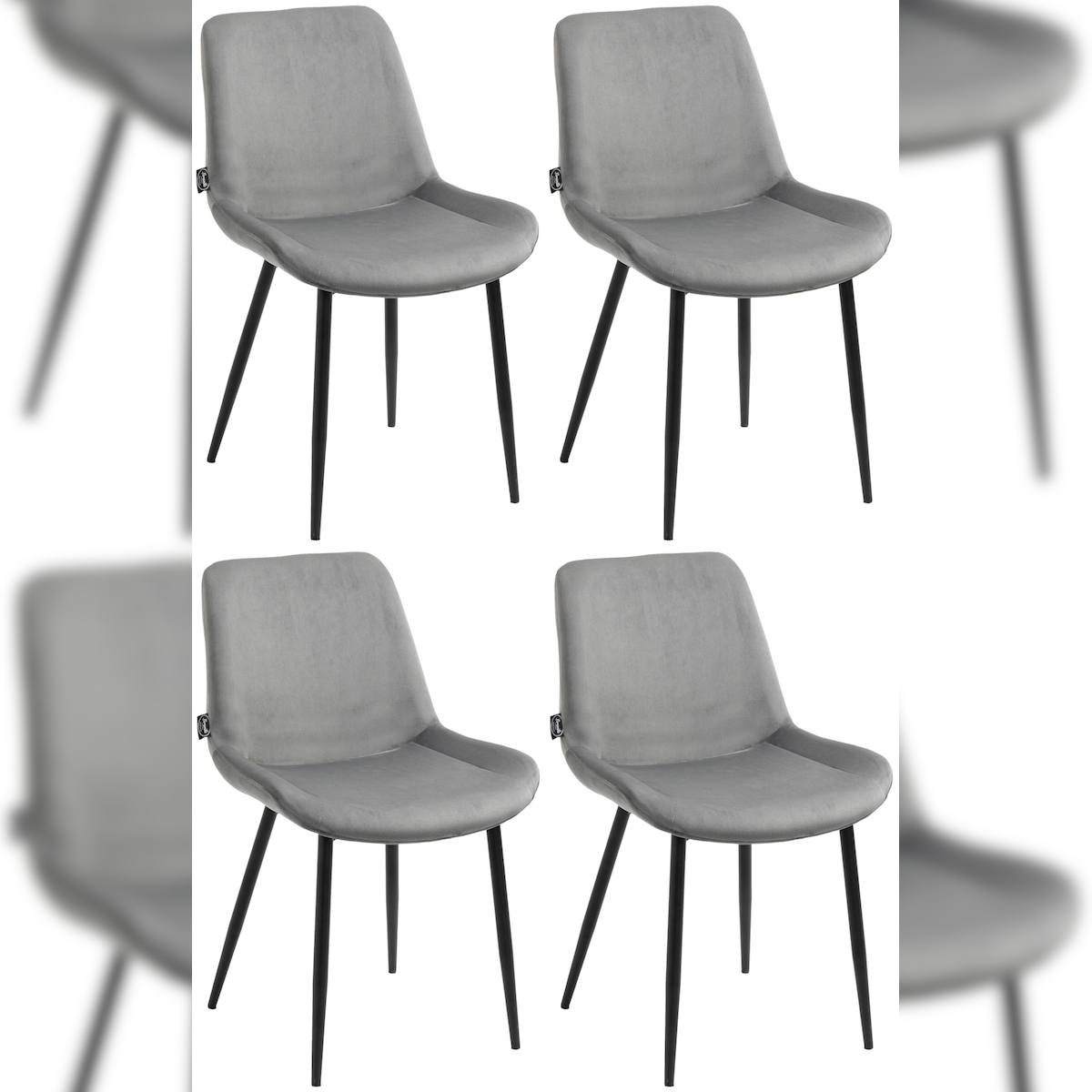DELUKE® 4er Set Esszimmerstühle WIKIL Samt - 80x51x60cm, grau, Samt Metall matt schwarz Gestell Stühle EsszimmerstühleEsstisch Stühle Küchenstuhl