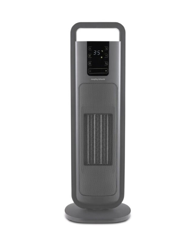 Morphy Richards HeatFlux 2kW PTC Tower Fan Heater with Remote Control – Grey, 825404