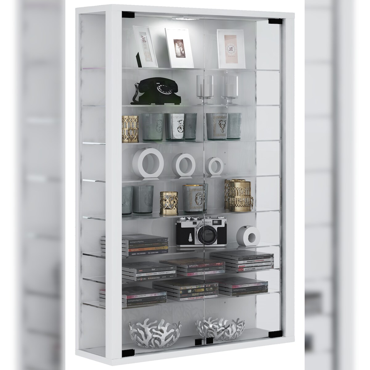 Ebuy24 VitrosaMini Vitrine, wandhängend mit 2 Glastüren, 8 Glasböden, weiß.